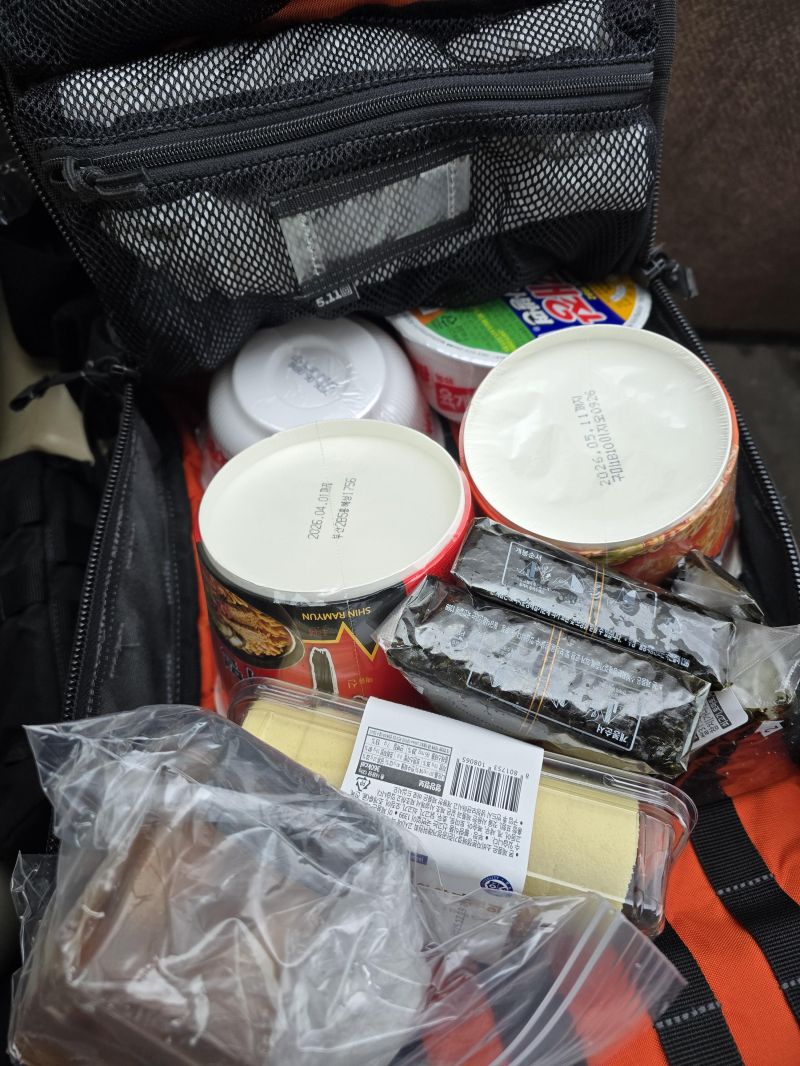 날이 밝고 이제 향적봉으로 올라갈건데 미리 올라가서 먹을 것들을 준비해서 갑니다. 가방은 5.11 러쉬 24에 넣어갑니다. 와이프는 왜 이 가방을 산지 8년이 되었지만 아직 이해를 못합니다.