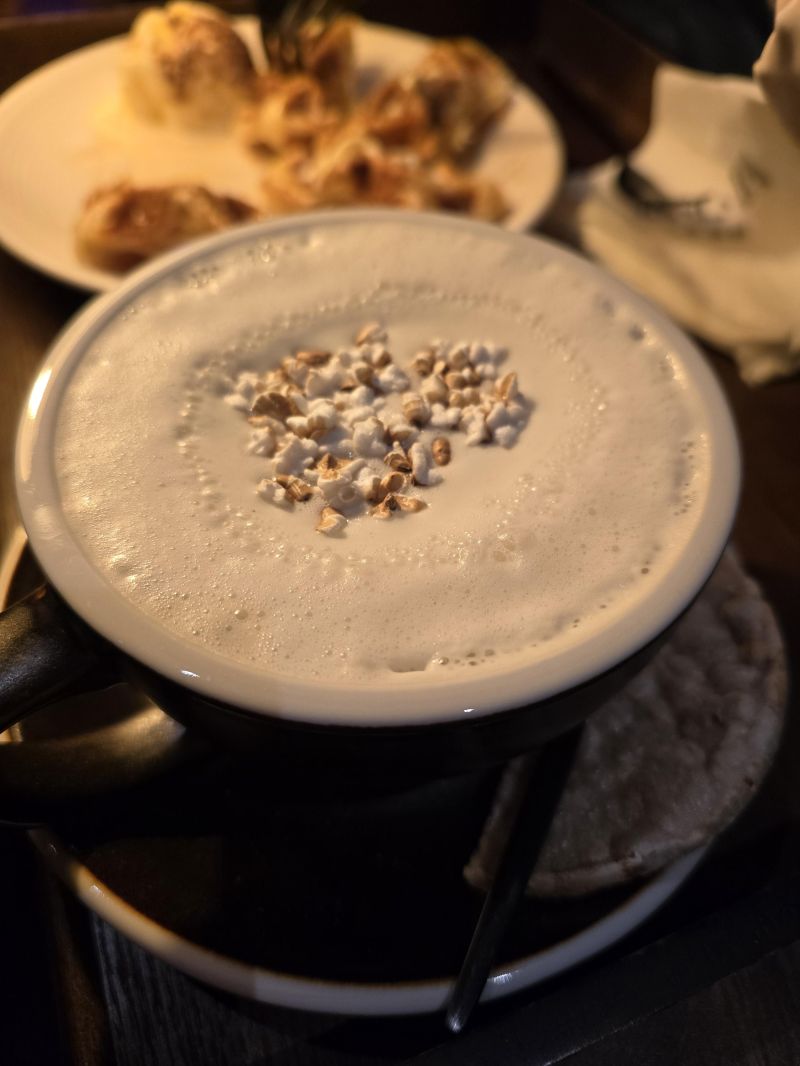 시그니처메뉴인 천마크림 밀크티예요. 달달합니다.