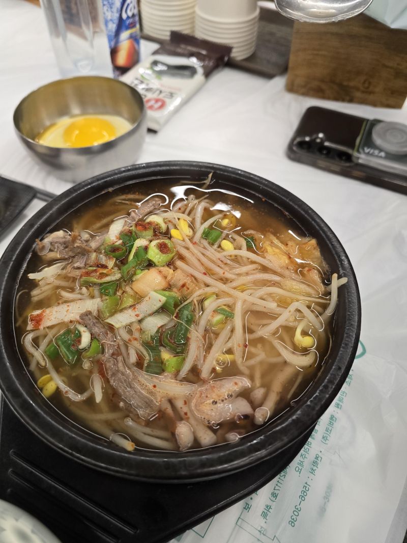 와이프가 먹은 콩나물해장국인데요. 이것도 나쁘진 않은데 제 입에는 부대찌개가 더 맛있었습니다.