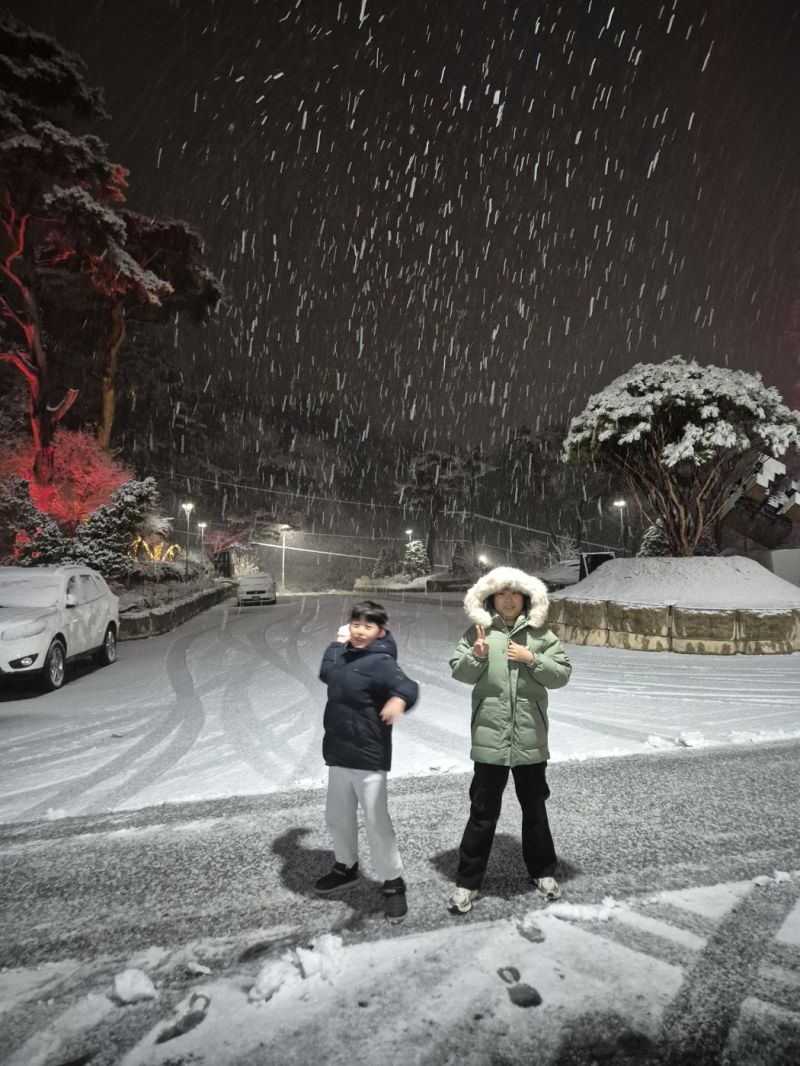 숙소로 와서 1시간 졸다가 배가 고파 검색을 해보니 부대찌개랑 콩나물 국밥 파는곳이 인근에 있어서 가려는데 눈이 벌써 내렸더라구요. 그냥 승용차라서 걱정이 되긴했는데.. 우선 나갔습니다.