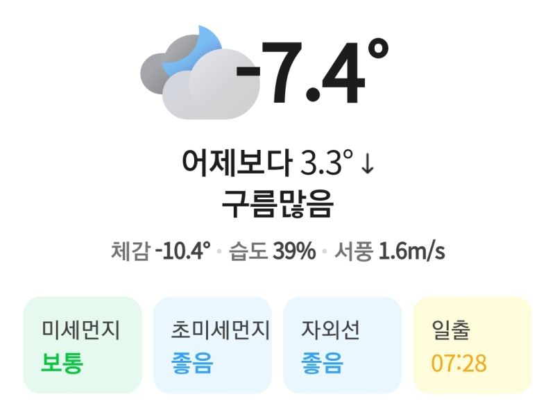 토요일인 오늘(7일) 아침 최저기온이 -15도까지 떨어지는 등 매우 춥겠다. 바람도 강하게 불어 체감온도는 더욱 낮겠다.