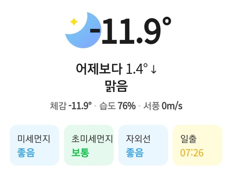 최저 기온은 영하 15도에서 영하 2도 사이, 낮 최고기온은 2도에서 11도 사이로 예상됩니다.