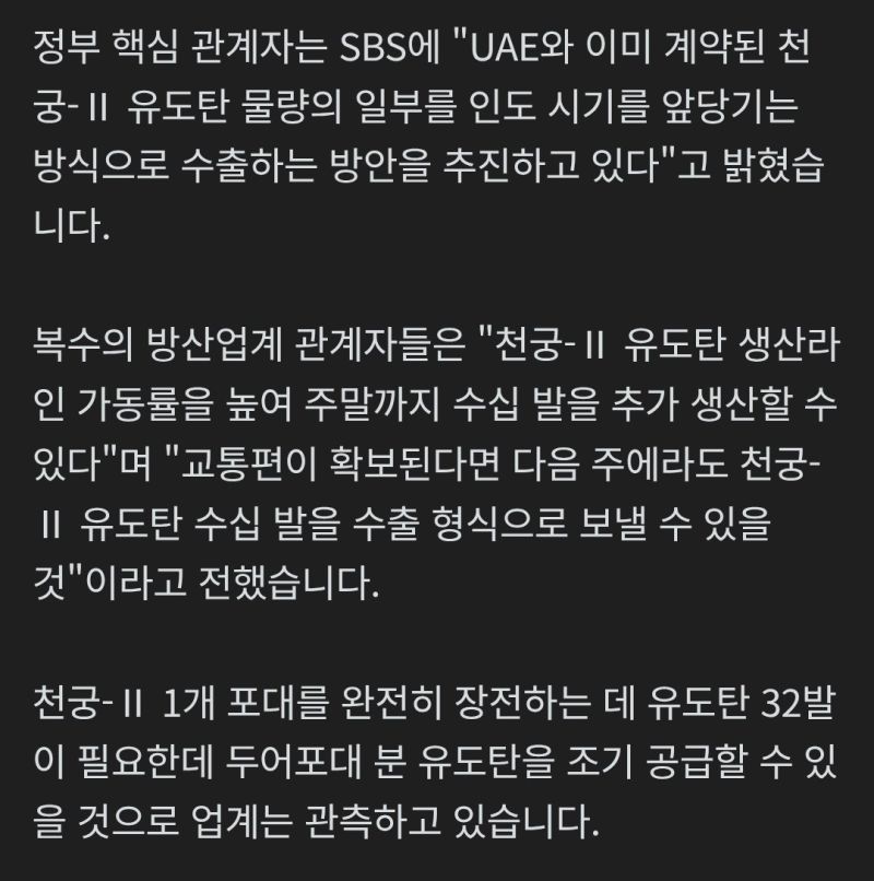 감탄한 UAE는 기존 납품된 2개 포대 외 추가 8개 포대를 최대한 빨리 달라고 독촉하는 상태이며 여기에 사우디, 이라크도 추가납품을 요구하고 있습니다.