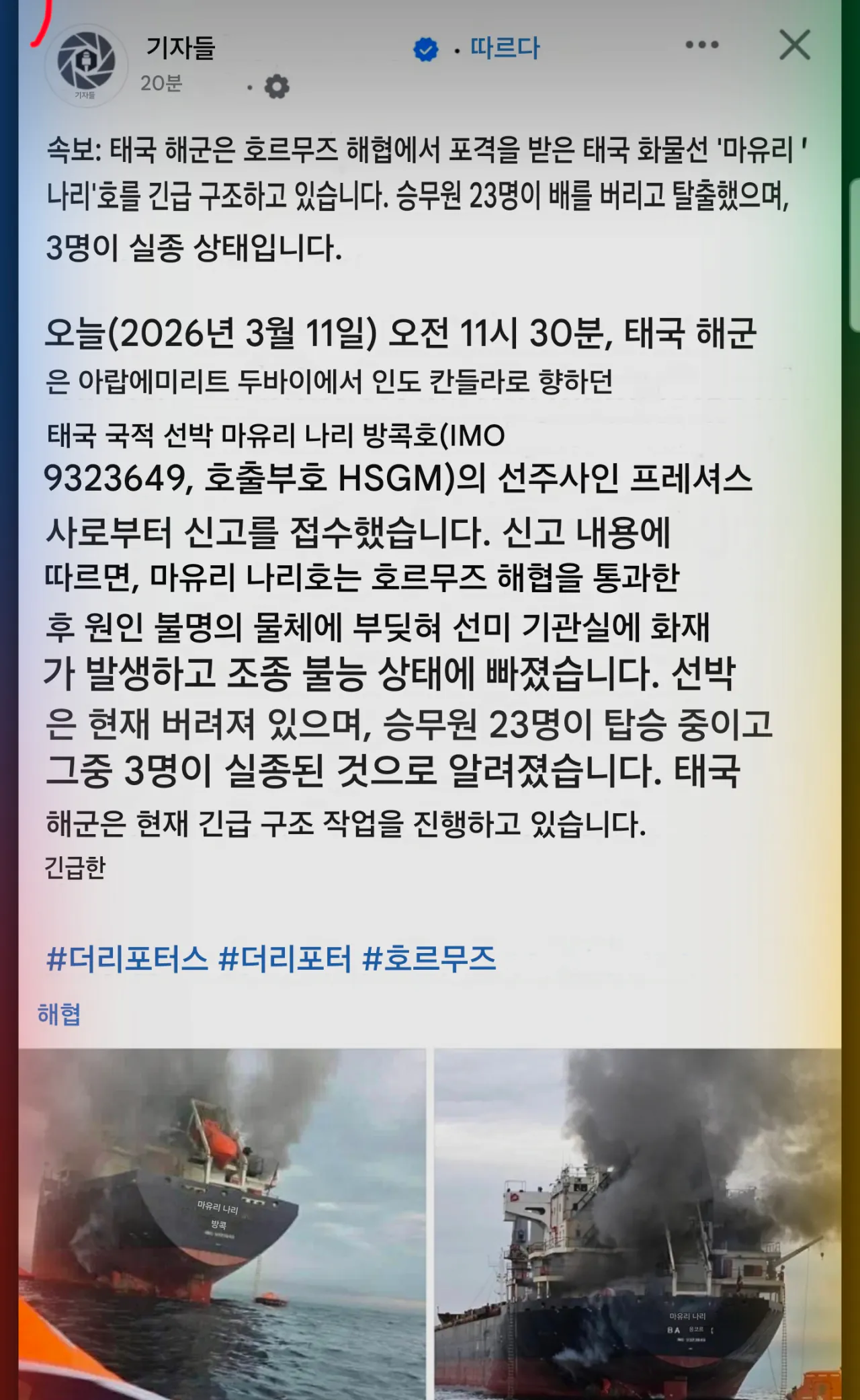 더이상 큰 피해는 없기를 바랍니다ㅜ