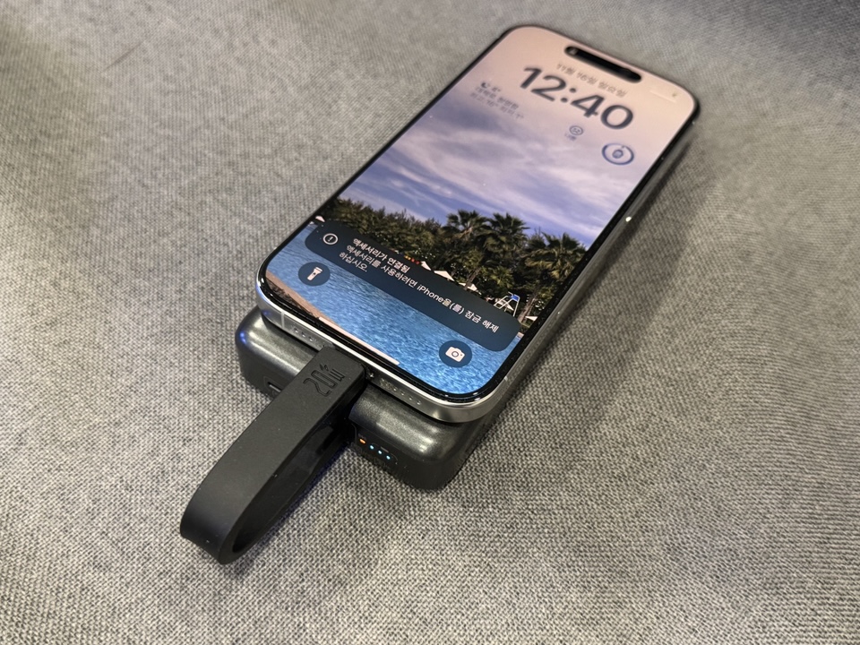 별도의 케이블을 휴대하지 않아도 기본 케이블을 통해 간편하게 충전할 수 있다는 점이 장점이 되더군요.