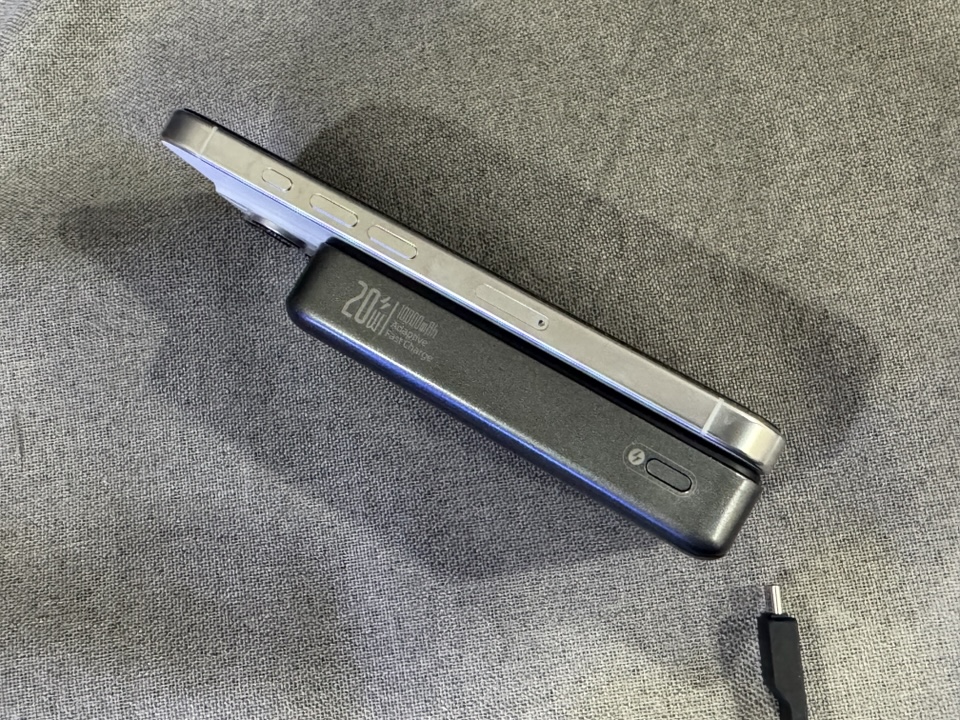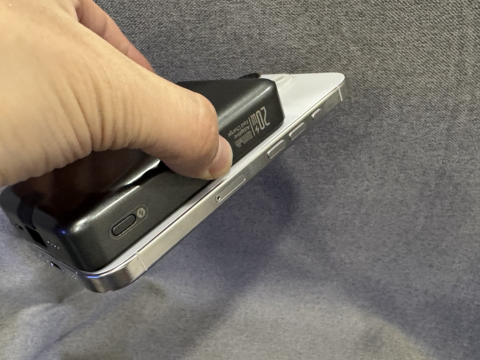 두께는 스펙상으로 2cm 정도고 아이폰 16 프로의 맥세이프에 장착하면 요런 어부바 느낌이 됩니다.