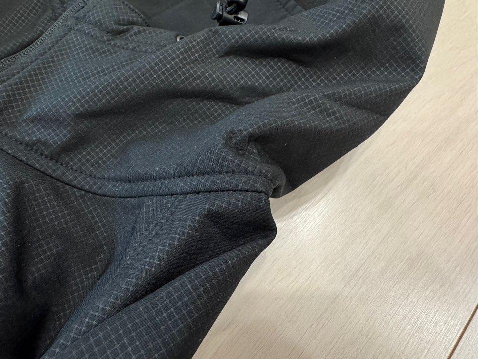 팔쪽에도 이렇게 원단이 분리되어 운동성이 좋고 내구성이 뛰어나도록 잘 박음질 된 부분이 눈에 띄었습니다.