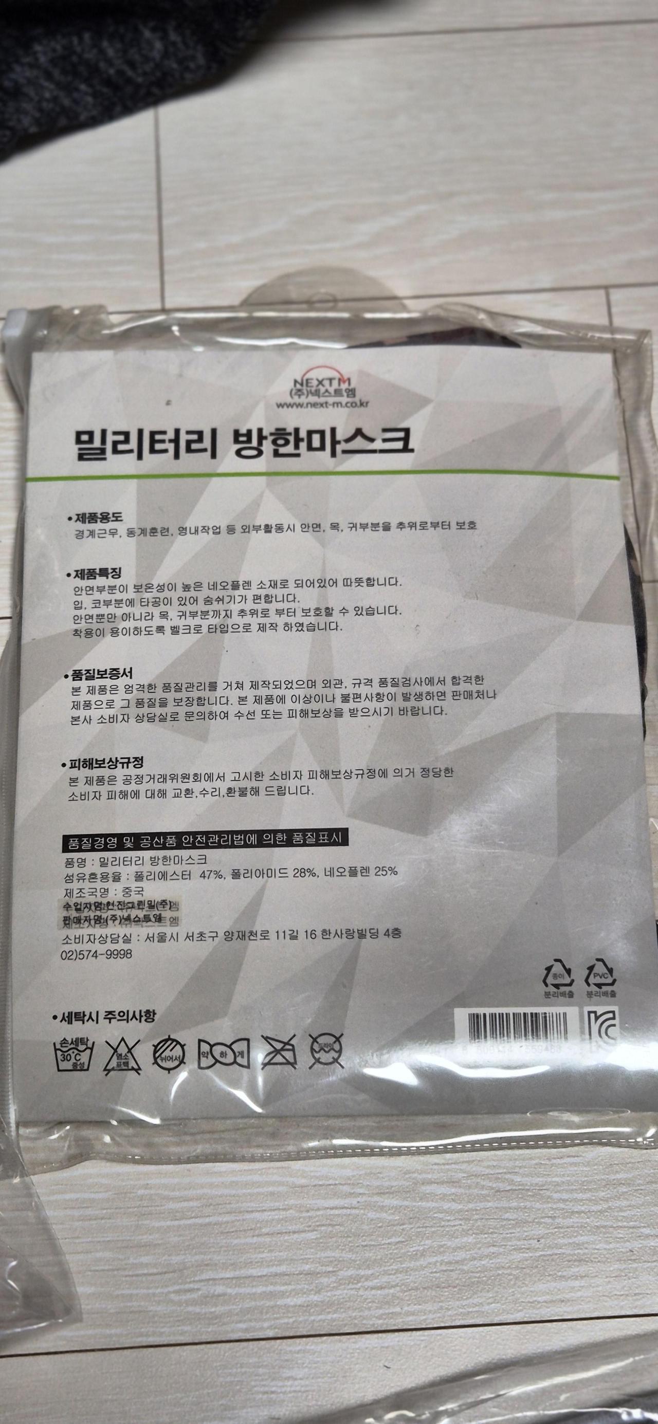 따뜻한 육군 방한마스크 |
