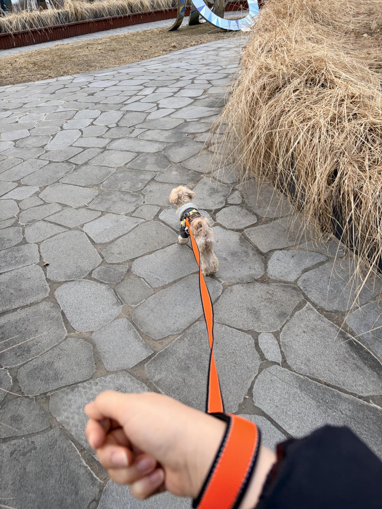 평소에 손으로만 들고 산책할 때도 있고, 가끔 허리나 어깨에 감아서 산책할 때도 있는데,