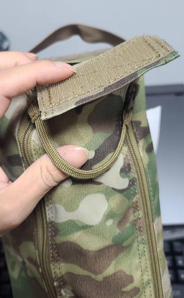 겉 파우치 부분에도 신경을 쓴 걸 알 수 있는데 지퍼를 내리기 전에는 벨크로 부분을 열어야 지퍼를 내릴 수 있습니다.