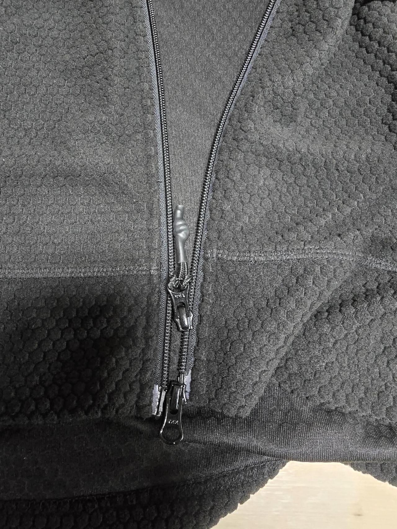 등산 가방착용중에 땀나면 위쪽 자크 열기 힘들때 아래쪽으로 조금 열기 아주 편해요. 굿입니다.