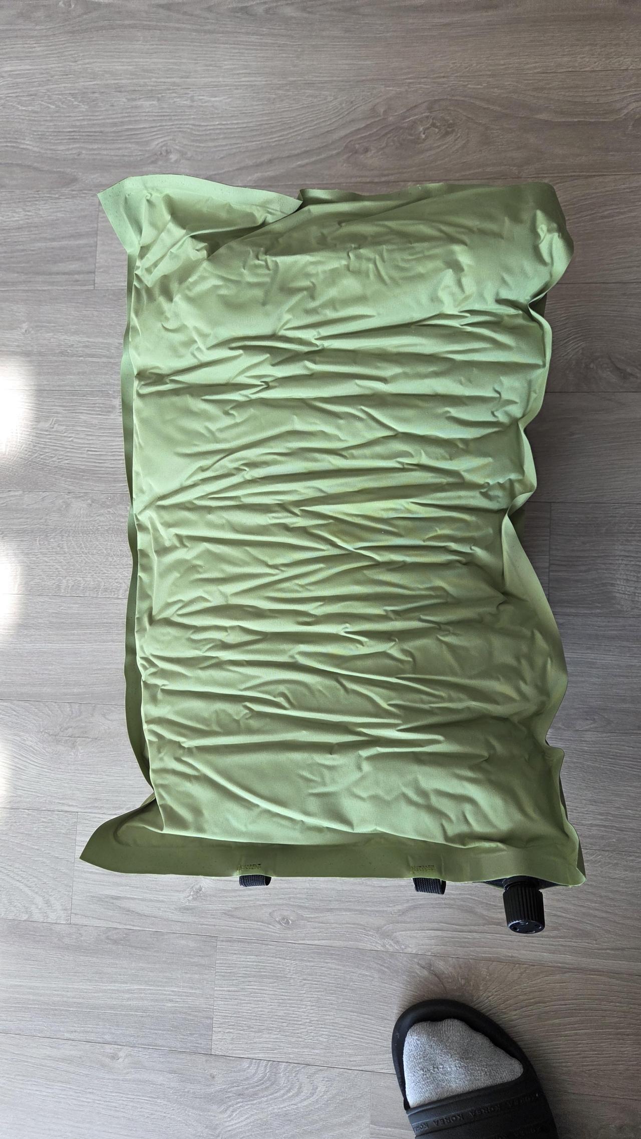 당직 근무시에 취침시 구비된 베개가 너무 높아서 가끔씩 사용하려고 구매했는데 생각보다 원상태 회복에 시간이 오래 걸리네요. 홈페이지처럼 주름이 없게 회복되지는 않고 사진과 같이 됩니다. 별도 태그에는 아웃도어용으로만 사용하라고 되어 있는데 일반 베게처럼 매일 사용 시 내구성이 안되는듯 합니다