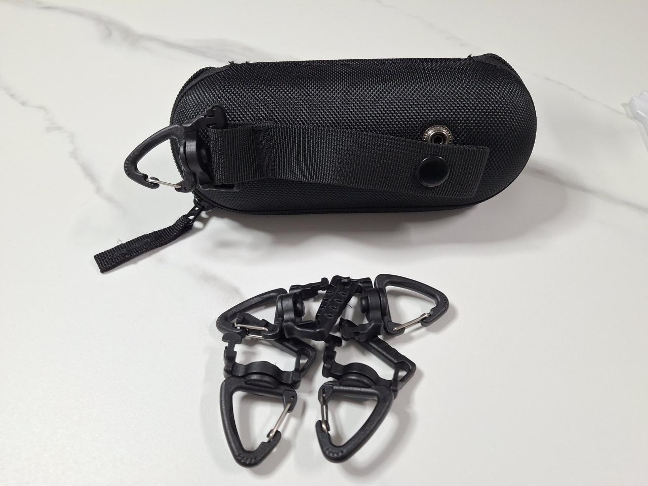 해저드4 밀포드 볼리스틱 나일론 선글라스 케이스 (블랙)의 상부 클립 쇠 부분이 어는날 빠져 버려서 임시로 집에 굴러다니던 카라비너로 임시 연결해서 썼는데 트라이앵글 후크가 정말 딱 맞게 채워지네요^^ 전에 원래 달려 있던 후크보다 디자인도 그렇고 만듦새도 더 좋네요^^
