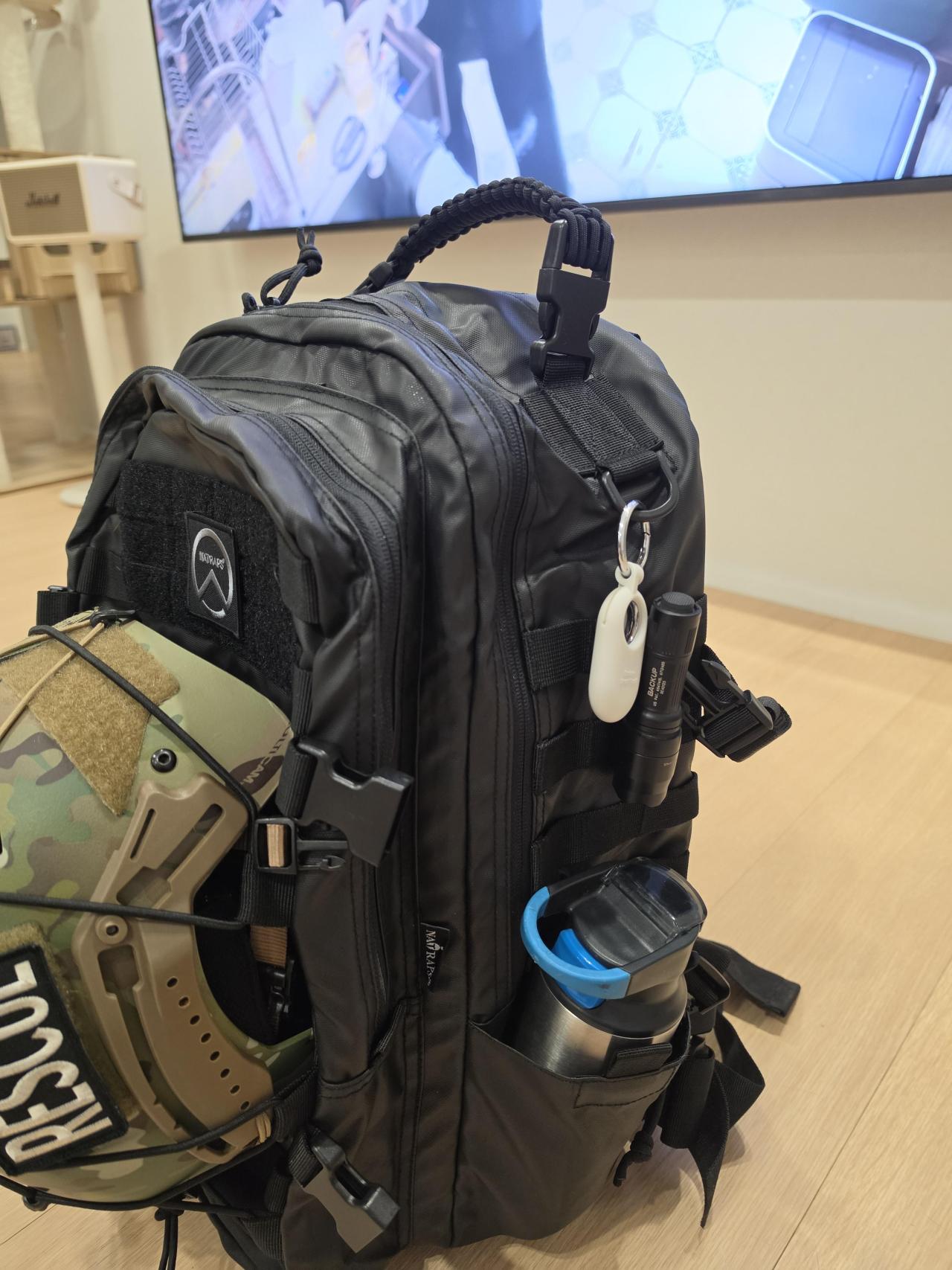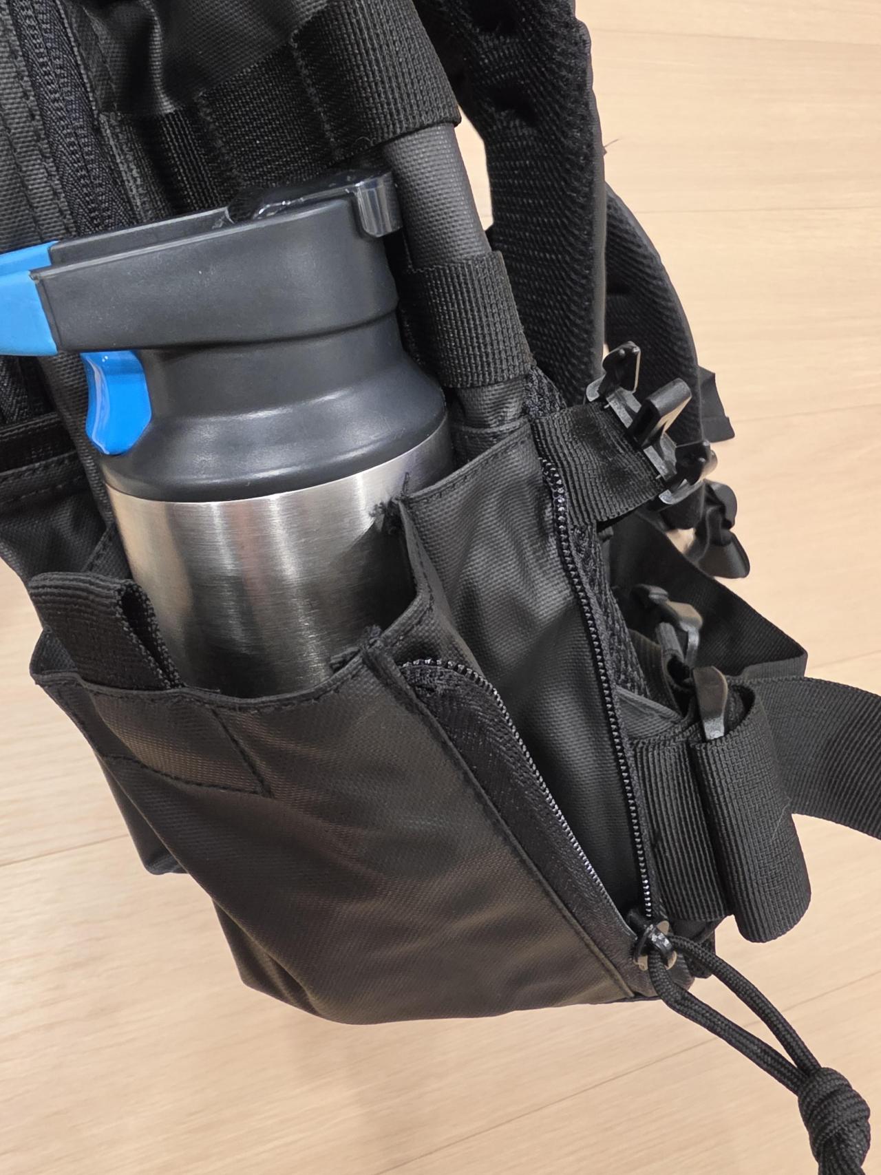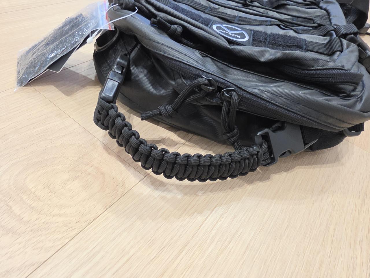 그밖에 손잡이가 파라코드 형태로 되어있어 필요에 의해 응용해서 사용한다던가, 사이드 파우치에 지퍼 처리로 조금 더 넉넉한 확장이 가능하다던가 하는 미세한 디테일을 잘 다루었습니다.