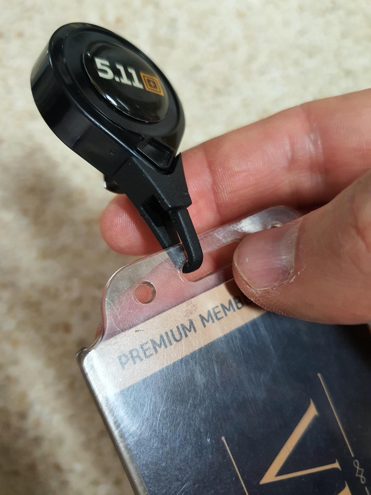 플라스틱의 텐션을 이용해서 신분증 케이스의 구멍에 바로 끼울 수 있습니다.