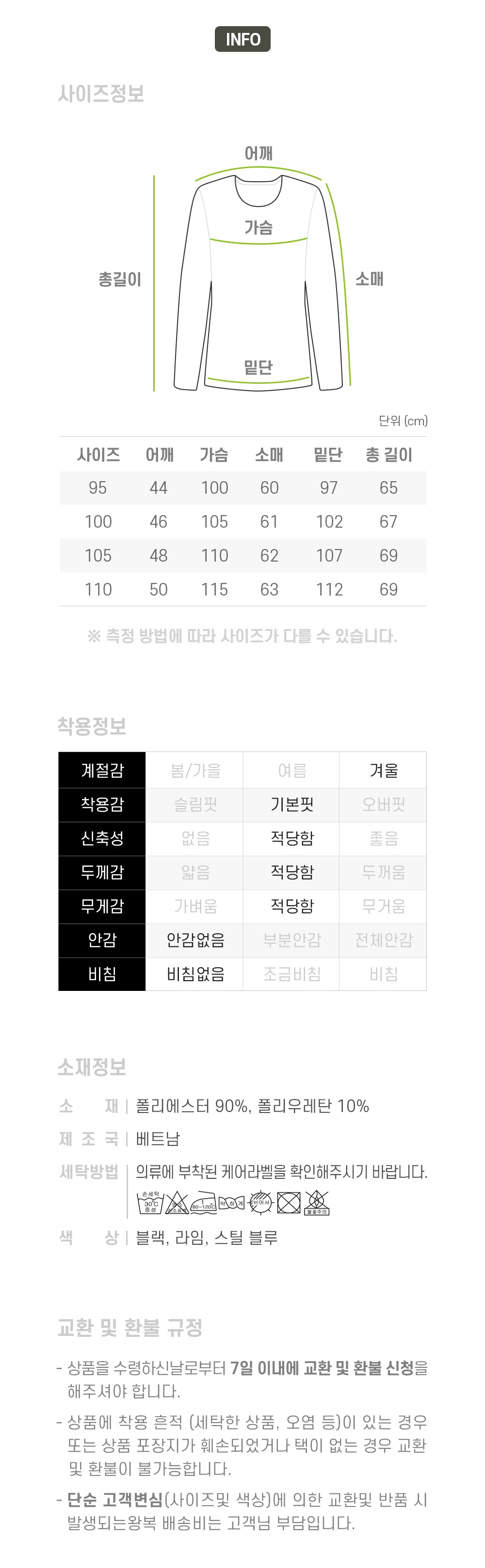 되니 받으셨을때의 형태 그대로 반품하시기 바랍니다.) - 상품이 불량일 경우에도 착화 및 세탁 후에는 반품, 환불이