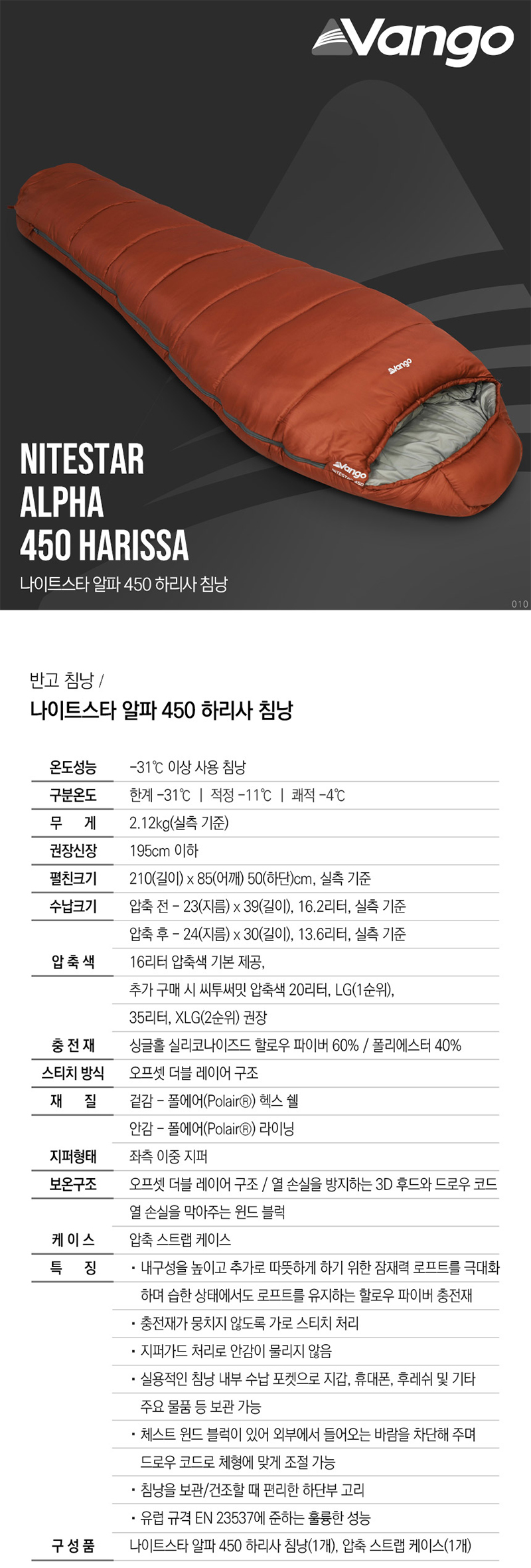 반고 나이트스타 알파 450 침낭 (하리사) |