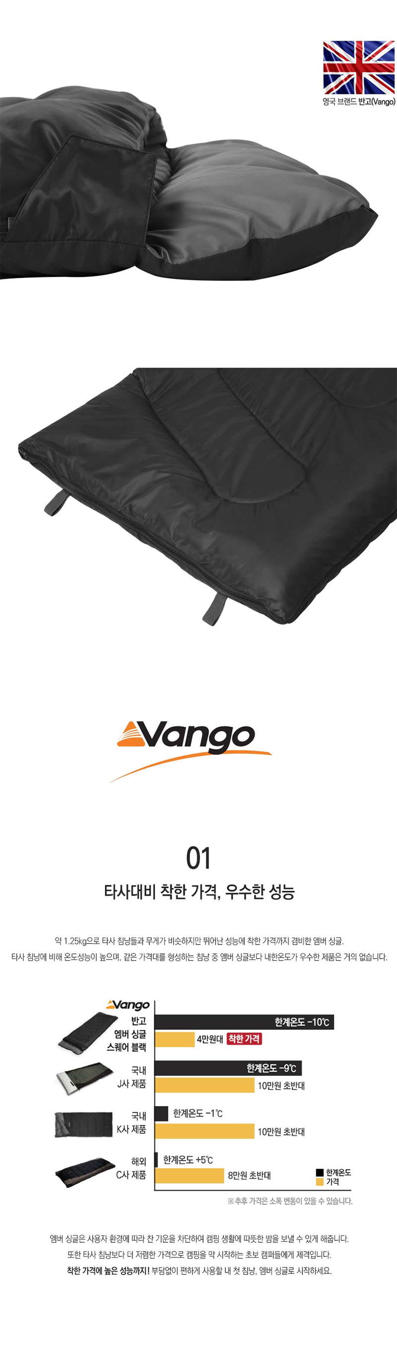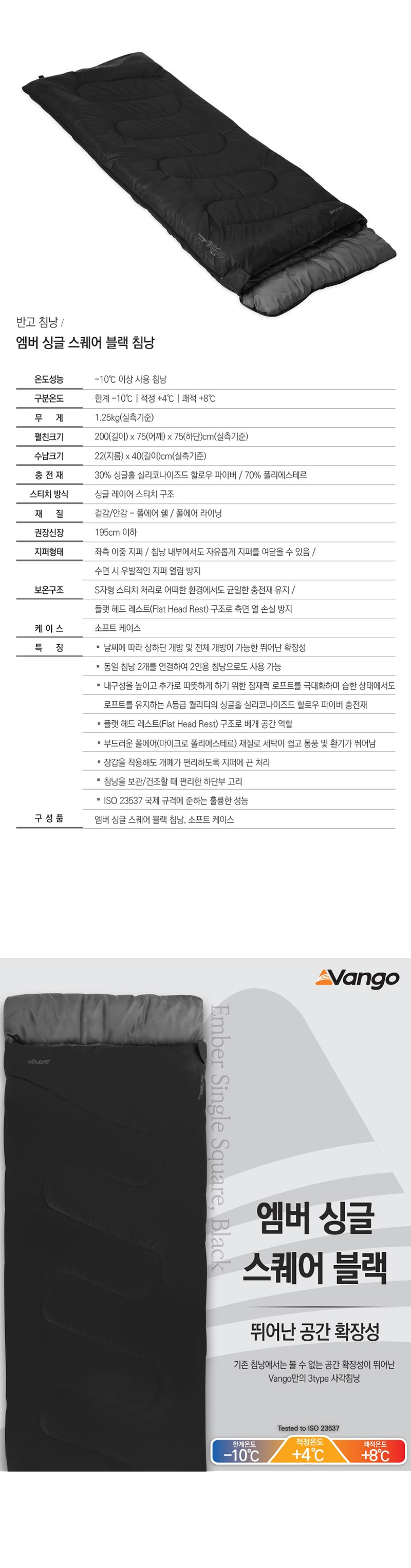 반고 엠버 싱글 스퀘어 침낭 (블랙) |