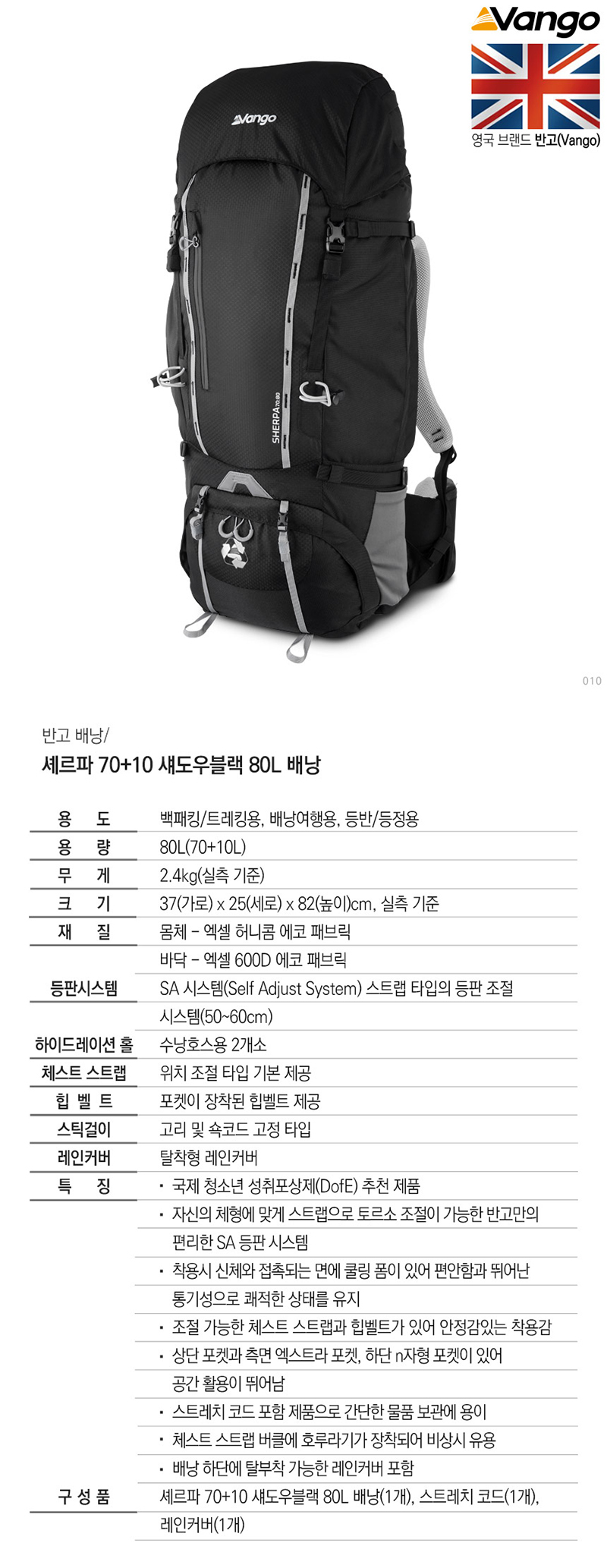 반고 셰르파 70+10 80L 배낭 |