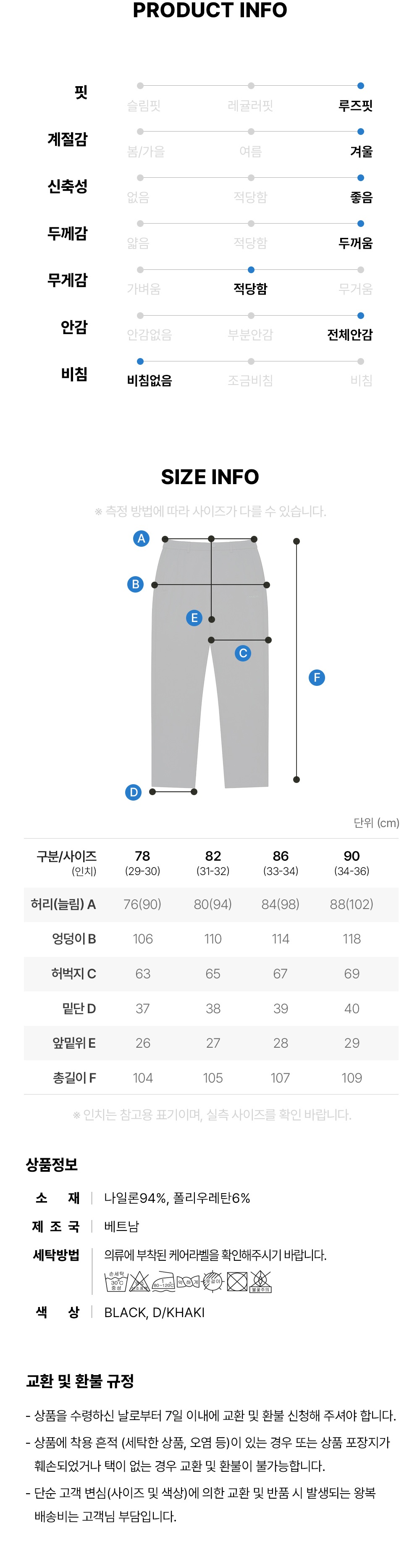 되니 받으셨을때의 형태 그대로 반품하시기 바랍니다.) - 상품이 불량일 경우에도 착화 및 세탁 후에는 반품, 환불이