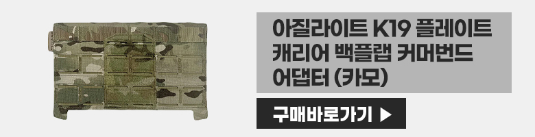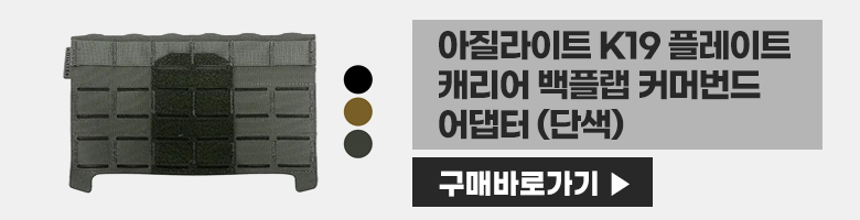 - - 아질라이트 K19 플레이트 캐리어 백플랩 커머번드 어댑터 (미포함) 사용 시 아질라이트 워파이터 커머번드, 아질라이트 모듈러 엘라스틱 커머번드 등 벨크로 고정식 커머번드 사용 가능