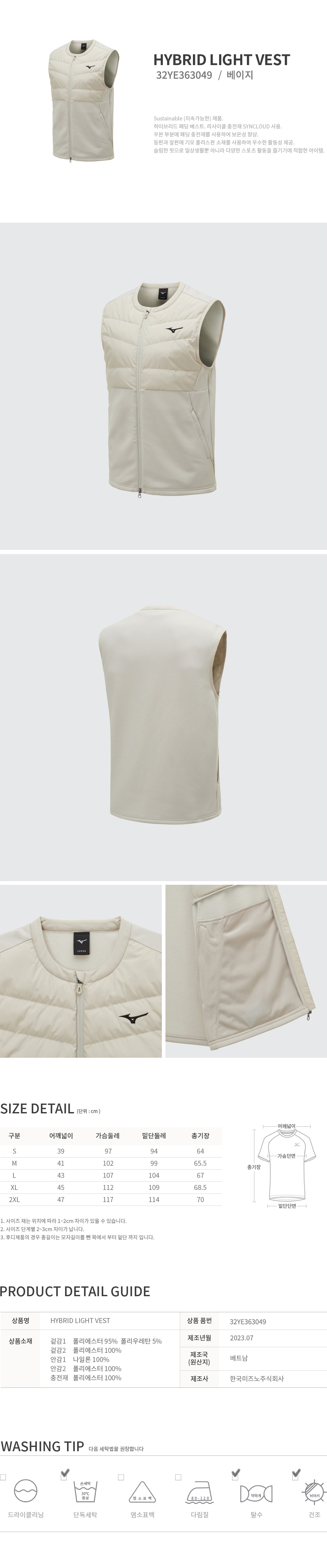 CQR 미즈노 하이브리드 라이트 패딩 베스트 32YE363049