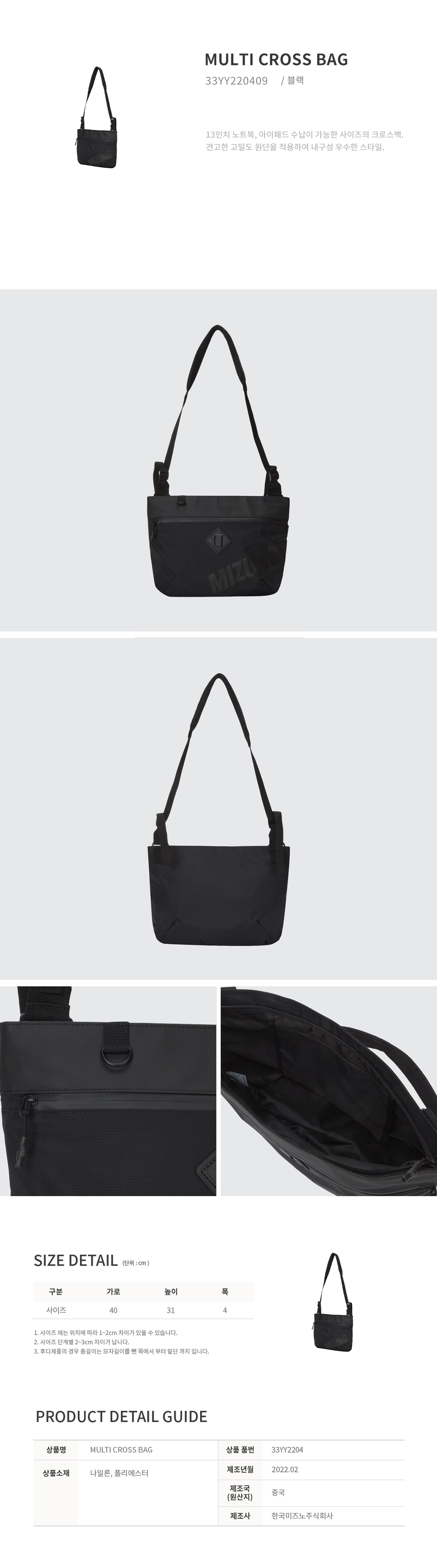 CQR 미즈노 멀티 크로스백 가방 33YY220409
