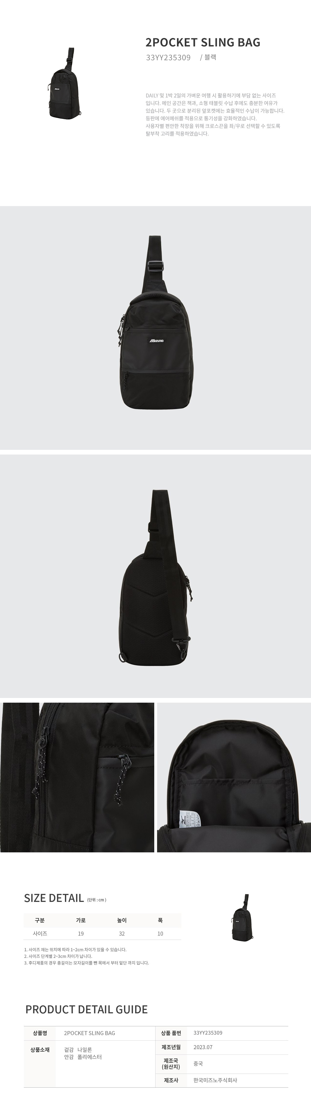 CQR 미즈노 투 포켓 슬링백 가방 33YY235309