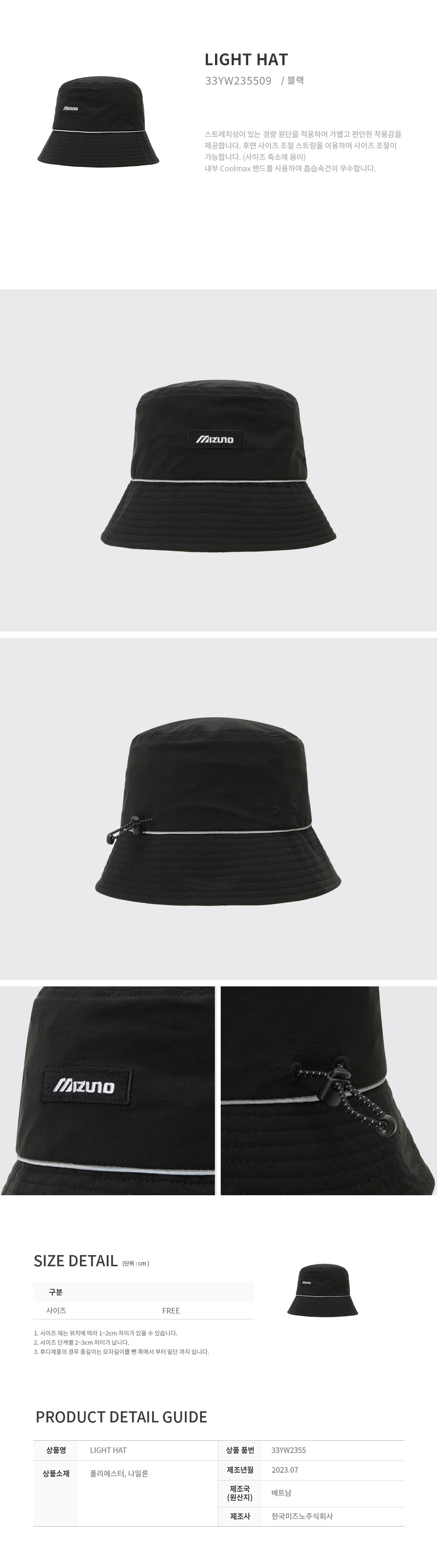 CQR 미즈노 라이트 버킷햇 모자 33YW235509