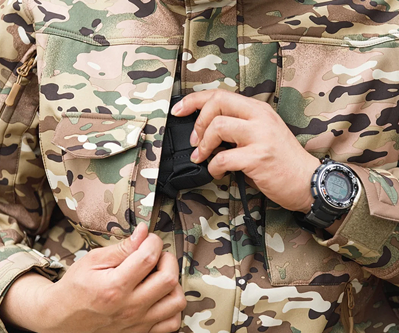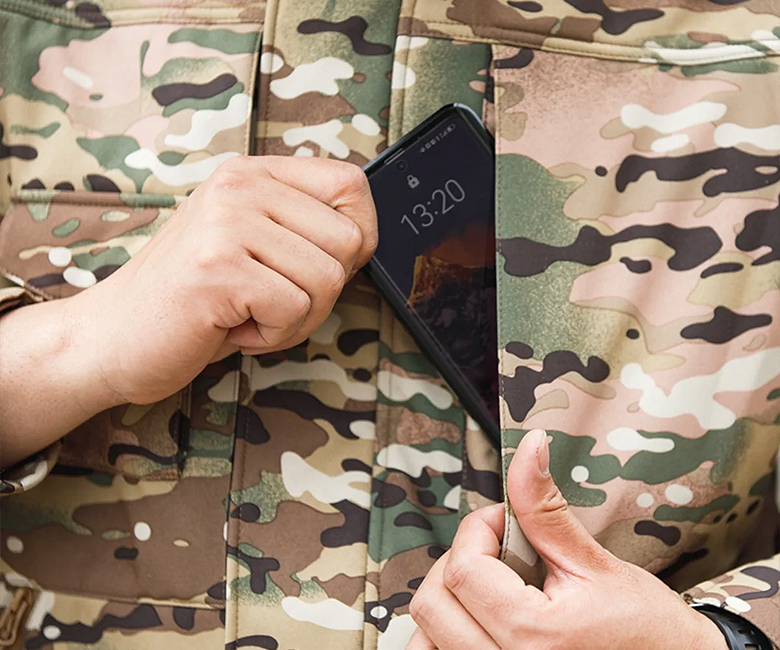 - 우측 가슴 상단에 플랩 벨크로 포켓 구성