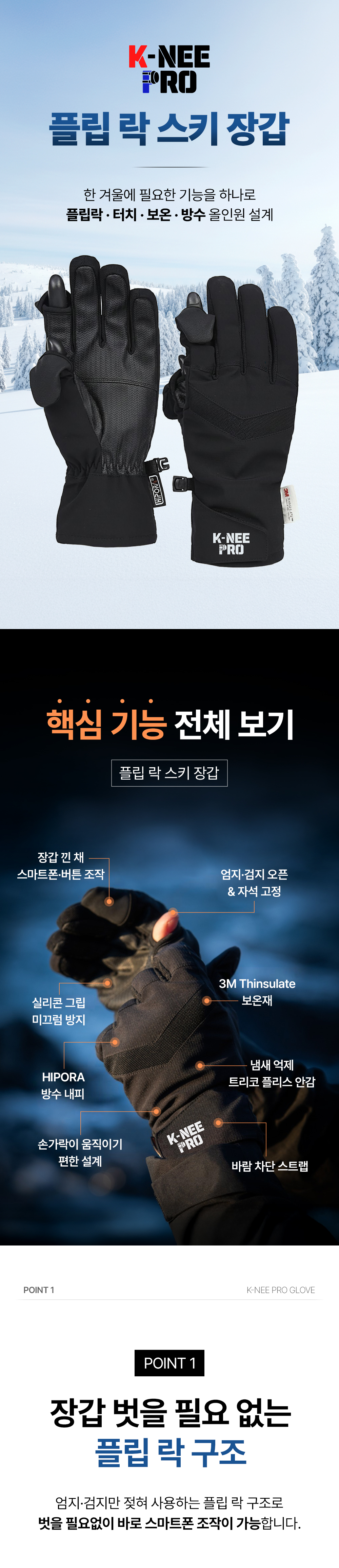K-NEE PRO 플립 락 오픈 핑거 3M 소재 스키장갑 |