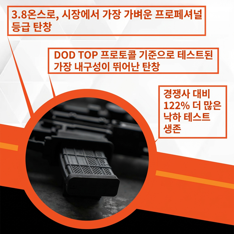 - 알루미늄 탄창 수준의 경량성 구현