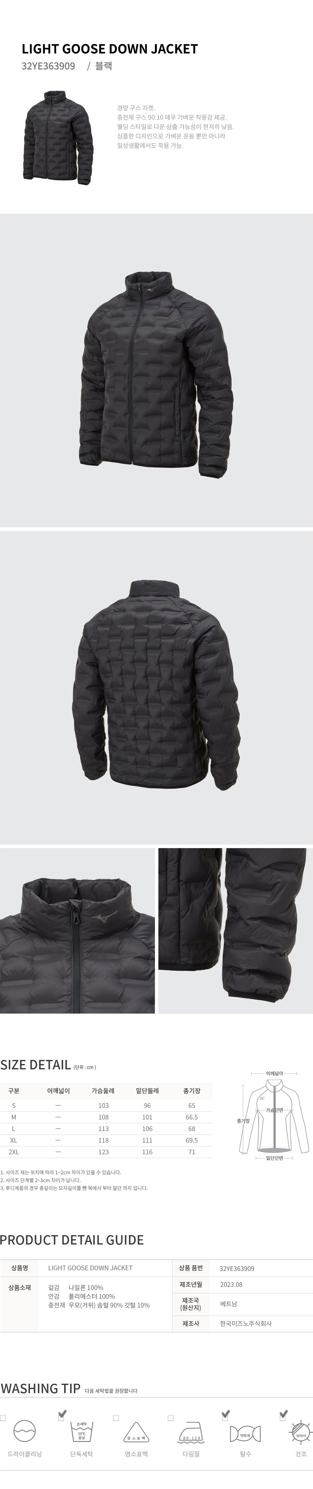 CQR 미즈노 경량 구스 다운 자켓 32YE363909