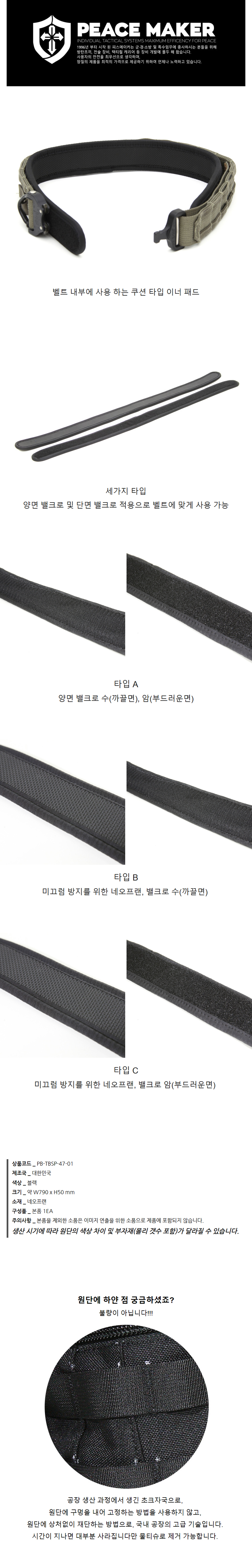 피스메이커 택티컬 벨트 슬림 패드 |