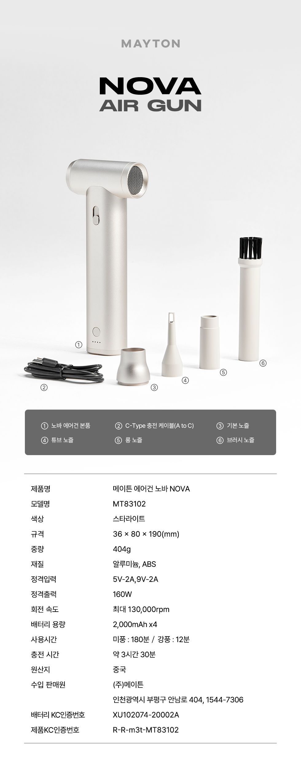 메이튼 무선 차량용 세차 캠핑 미니 초강력 에어건 노바 |