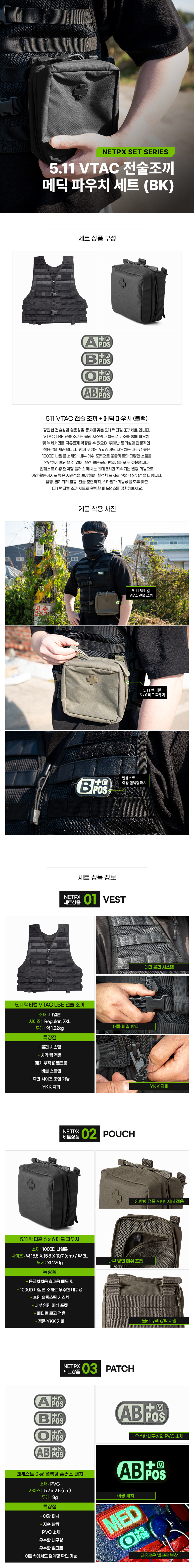 511 VTAC 전술 조끼 + 매딕 파우치 (블랙/블랙)